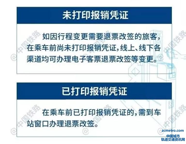 如需改签、退票,使用电子支付方式购票的旅客,可通过12306网站或车站指定窗口办理改签、退票手续;使用现金方式支付或已打印报销凭证的旅客,须到车站指定窗口办理。如需报销凭证,可于开车前或乘车日期之日起30日内,凭购票时使用的有效身份证件原件,到车站售票窗口(含自动售取票机、代售点窗口)打印;超过30日的,可联系铁路12306客服中心办理。
